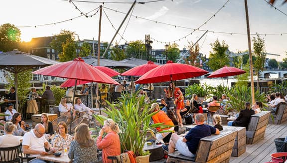 Cosy up at the Restaurant de Fortuna's terrace garden for a delicious lunch. Try some Edam cheese in a classic Dutch sandwich or toast. The garden offers a beautiful view over the waterways, perfect for watching the pleasure boats and kicking back with a refreshing summer drink.