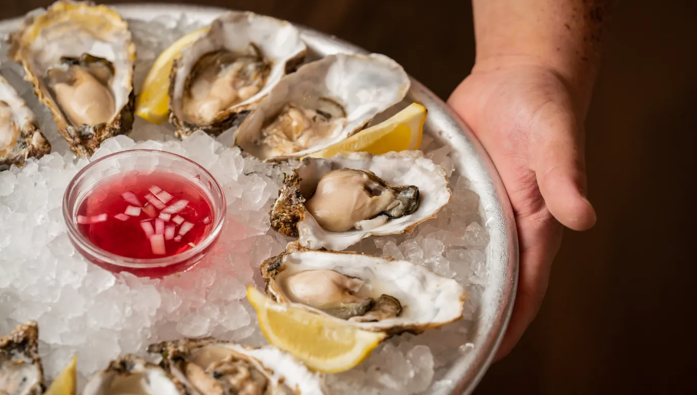 For the chicest oyster platters in town, prop up at the bar of this retro-classic à la carte bistro, which was recently awarded its very first Michelin star. Bistro de la Mer’s Irish mór oysters are elevated with a Franco-Japanese twist, doused in a shallot beurre blanc, Tobiko (Japanese caviar made from flying fish roe) and chive tapioca.