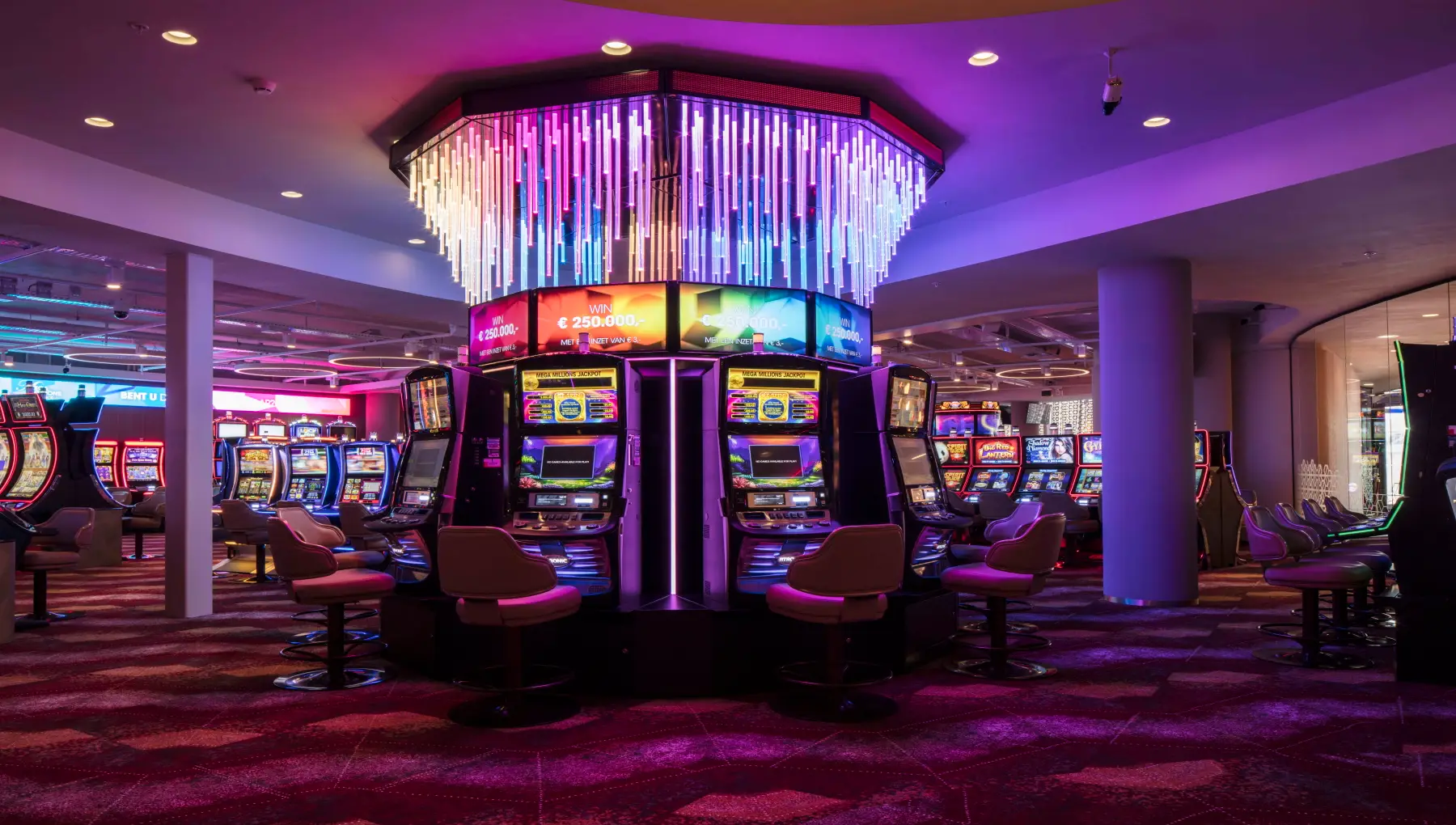 Holland Casino offers a wide range of gambling machines and table games including American Roulette, Black Jack, Punto Banco, Poker and more than 550 Slotmachines.
