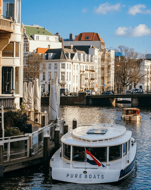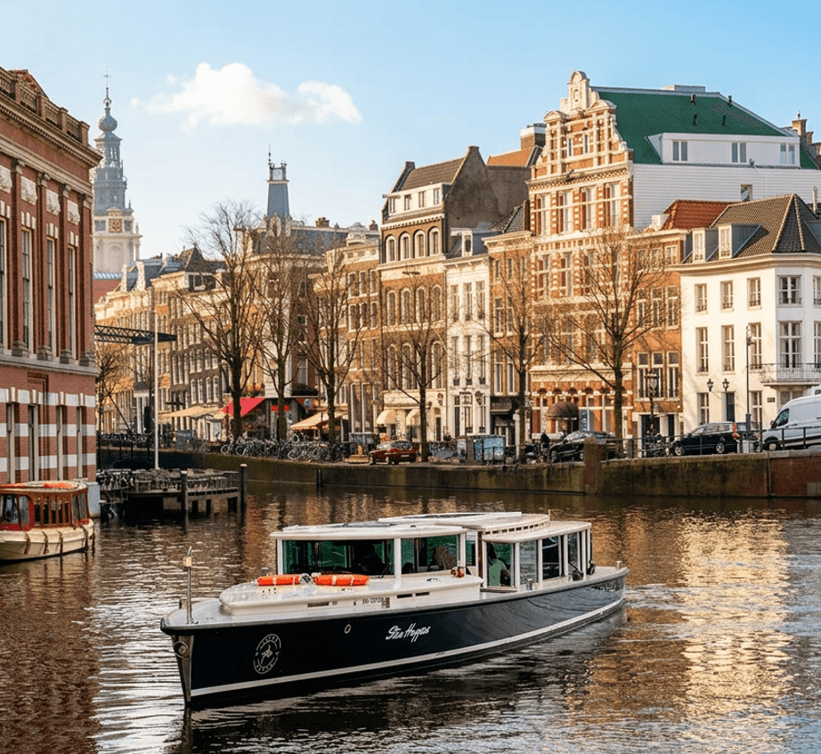 Experience Amsterdam’s UNESCO canals on a refined 1.5-hour semi-private canal cruise. Limited guests, premium drinks, and timeless elegance define this boutique experience.