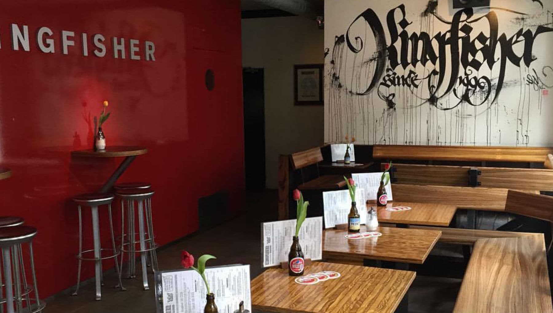 Kingfisher has become, more or less, the sitting room of the residents in De Pijp. In a bright interior with windows on both sides and red colour accents, the place is full of students and people who have been shopping at the Albert Cuypmarkt (street market) during the day time. In the evenings, it is packed with a mix of drinking artists, media people and easygoing civil servants. There is a kitchen that serves lunch, snacks and tasty dishes of the day.
