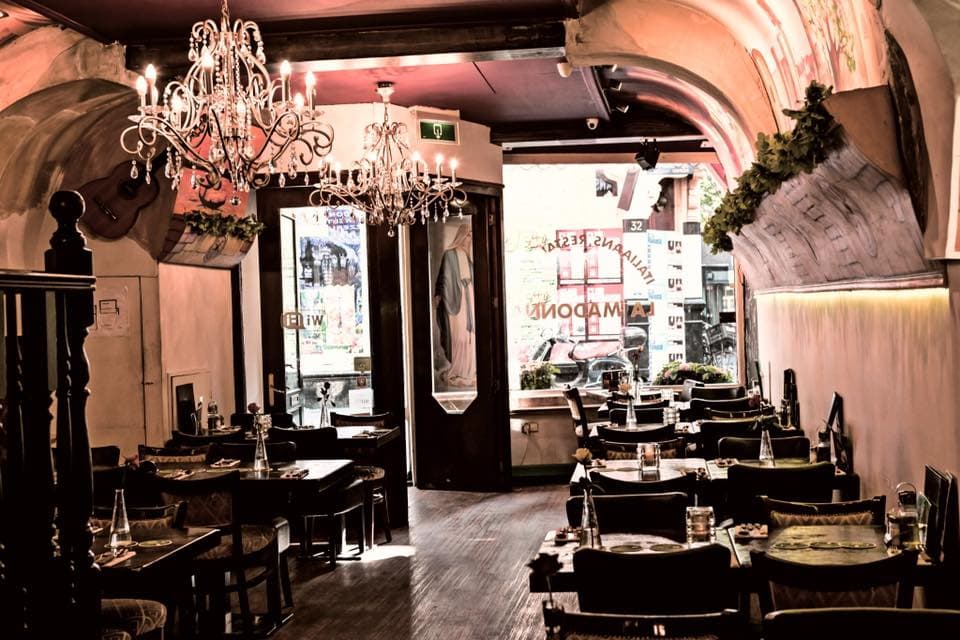 This Italian restaurant offers a selection of pizza and pasta dishes. It also has a meat and fish menu and a separate lunch menu. The menu includes various vegetarian dishes.