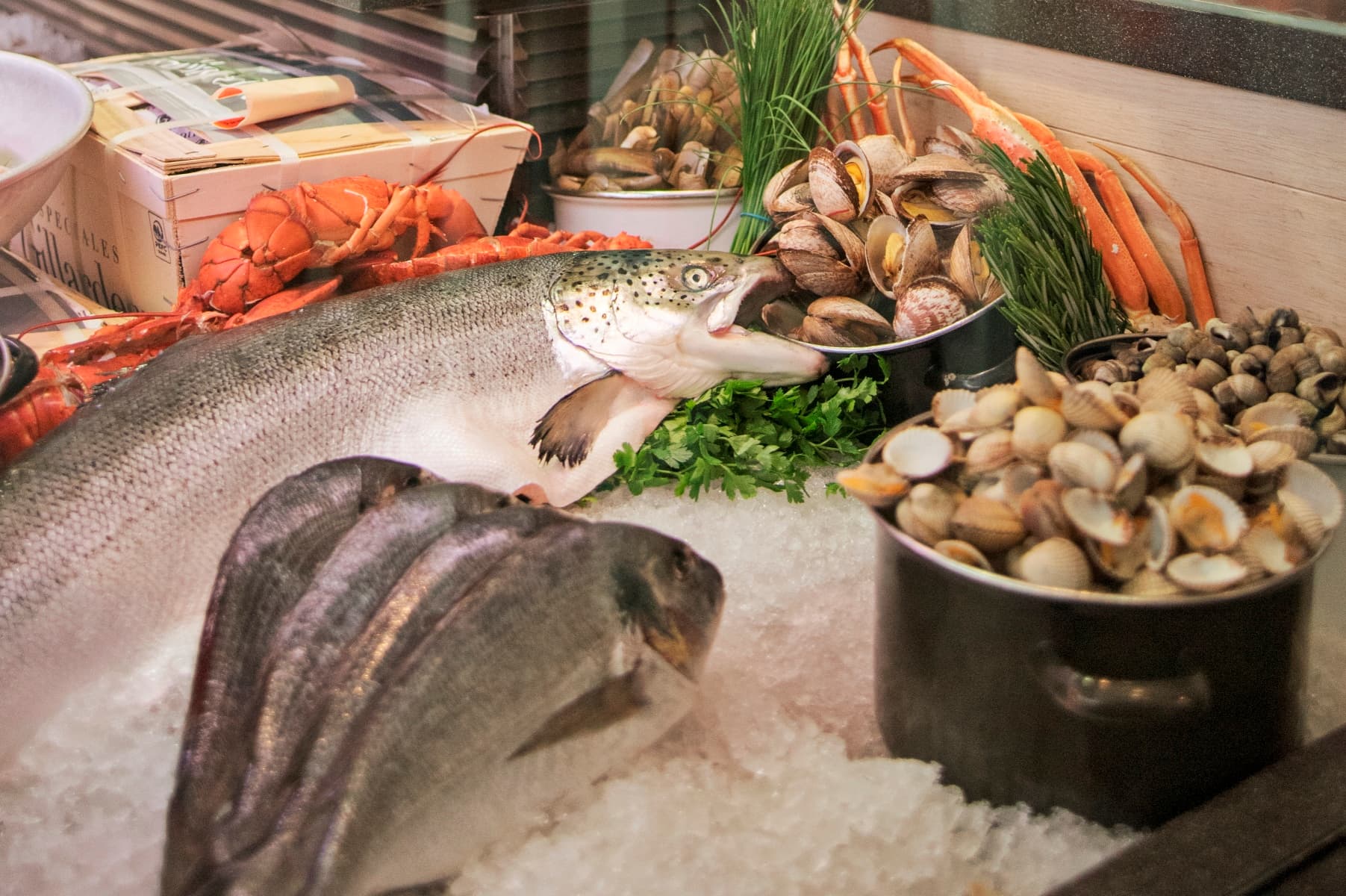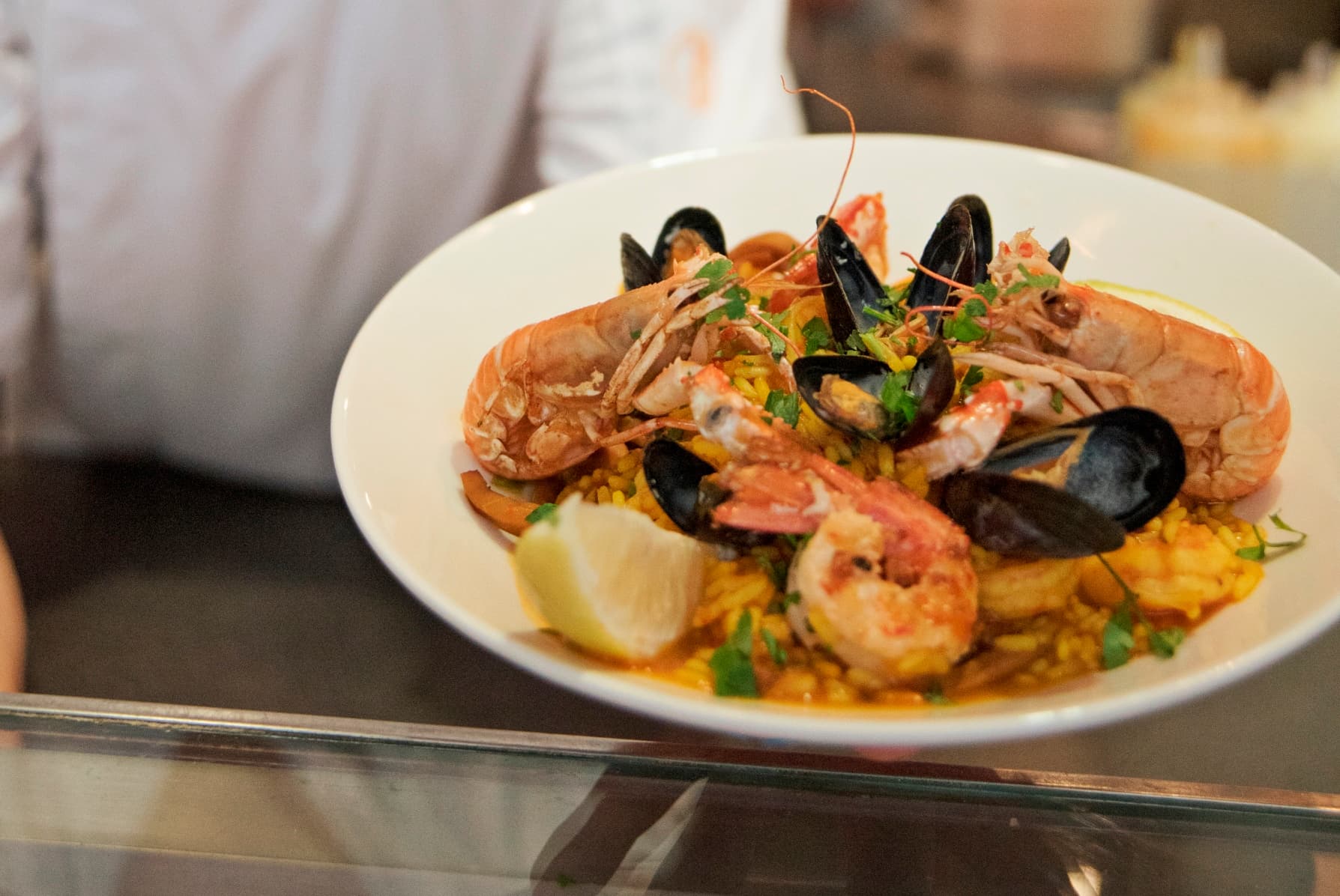 The selection of the Seafood Bar is super fresh and (not unimportantly) very tasty. The menu includes dishes such as lobster soup, fish nuggets, vongole in white wine and garlic shrimp. But you will also encounter Asian influences in the buttery soft sashimi and crispy tempura.