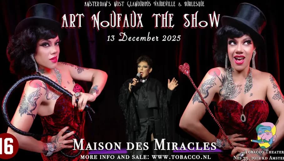 Stap naar binnen en je waant je achter de gesloten deuren van Maison des Miracles, in een heel ander tijdperk. De cast van Art Noufaux brengt de beste (inter)nationale artiesten uit de burlesque en vaudeville wereld samen, en presenteert een avond vol allure, fantasie, circus, storytelling en nog veel meer. Gebruik je Uitpas om kaartjes te bestellen en laat je meenemen terug in de tijd.