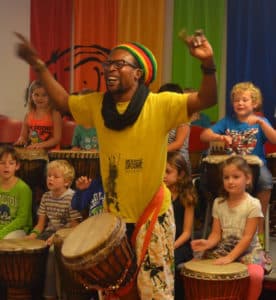 "Moussé Dramé neemt je mee naar West-Afrika. Hij laat je proeven van verschillende instrumenten, leert je een Afrikaans liedje en zorgt dat iedereen danst.