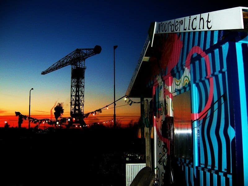 Vanaf de aanmeersteiger achter het Centraal Station vertrekt een aantal keer per uur de pont naar de NDSM-werf. Na aankomst is het vijftien minuten lopen naar Noorderlicht. Loop rechts het NDSM-terrein op met de loodsen aan je linkerhand. Aan het einde zie je rechts de locatie. Sinds de opening in 2006 hebben NDSM’ers, festivalbezoekers en avonturiers uit de stad hun weg gevonden naar een van de allermooiste plekjes van Amsterdam. Hier kun je op het terras of in het restaurant elke dag genieten van lunch of diner.