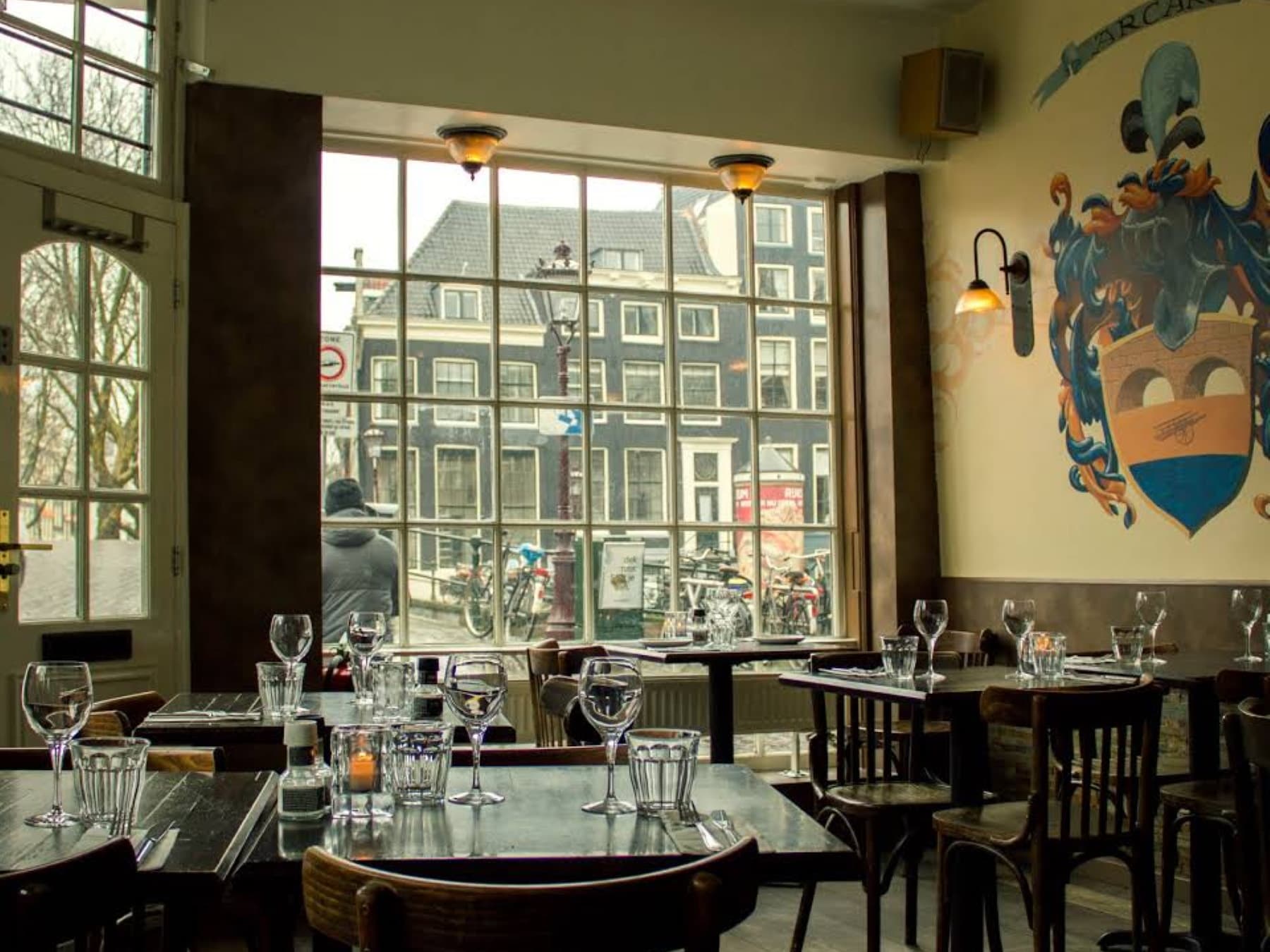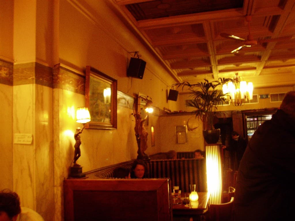 Het bijzondere café is sinds de opening in 1913 bijna niet veranderd. Het interieur is indrukwekkend: origineel Art Deco met hier en daar een snufje jugendstil. Nisjes om in te zitten, veel bewerkt hout, kleurig glasmozaïek, een vakkenplafond en marmeren panelen. Het is eigenlijk een plek om gewoon lekker achterover te hangen en een fles witte wijn met een half dozijn oesters te bestellen. Een heel menu kan overigens ook.
