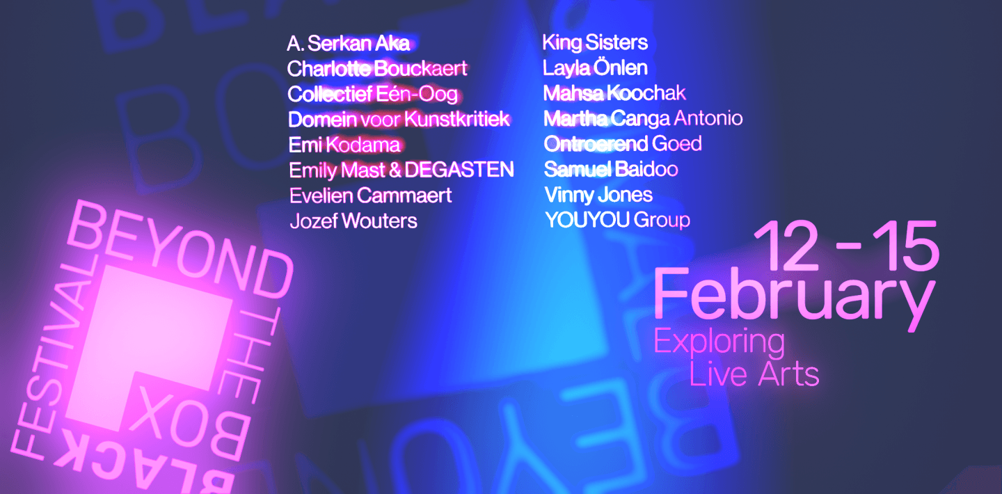 Houd je van de live ervaring, maar wil je meer beleven dan in de black box van het theater of de white cube van het museum? Dan is Beyond the Black Box jouw festival. Vier dagen lang transformeert de Brakke Grond in een levend laboratorium voor makers die niet binnen de kaders van theater, dans, beeldende kunst of digitale media opereren, maar ertussenin en er voorbij. Hét festival dat onder je huid kruipt! Let op: Genoemde eindtijden zijn een indicatie en kunnen afwijken op de dag zelf.