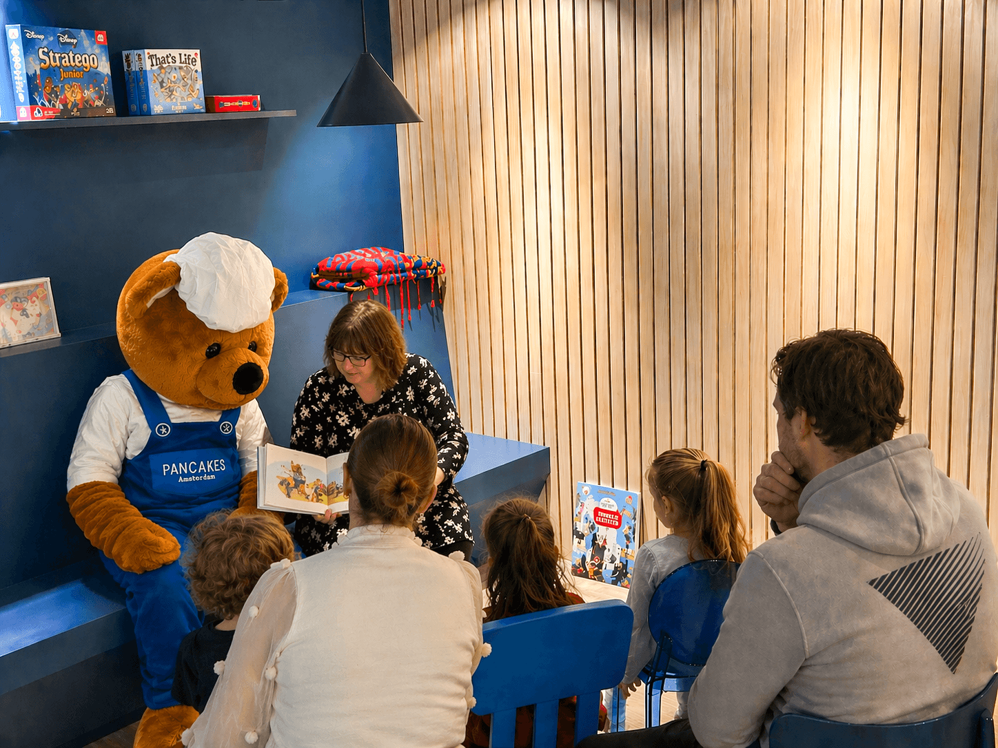 Elke eerste zondag van de maand: voorleesochtend bij PANCAKES Amsterdam Zuidas. Vanaf 10:00 starten we met voorlezen en daarna schuif je aan voor pannenkoeken. Kinderen en ouders genieten van interactieve verhalen en onze vrolijke PANCAKES beer "Benny" komt langs voor een knuffel. Perfect gezinsuitje om de zondag te starten! Volgende editie: zondag 3 mei 2026.