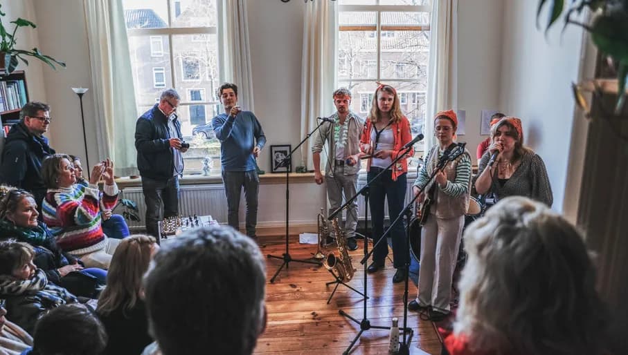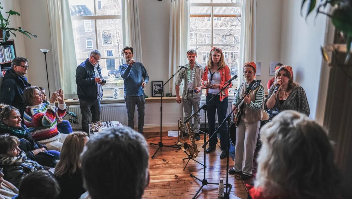 Op de eerste dag van februari barst door heel Amsterdam een vrolijk podiumkunstfestival los. In huiskamers, op pleintjes, in buurthuizen en cafés kun je genieten van muziek, poëzie en theater. Ontmoet je buren, plof ergens op de bank bij het gepingel van gitaarmuziek of smelt weg bij het haardvuur met vloeiende poëzie. Een reservering is niet nodig. Steun de kunstenaars en het evenement met een vrijwillige bijdrage.