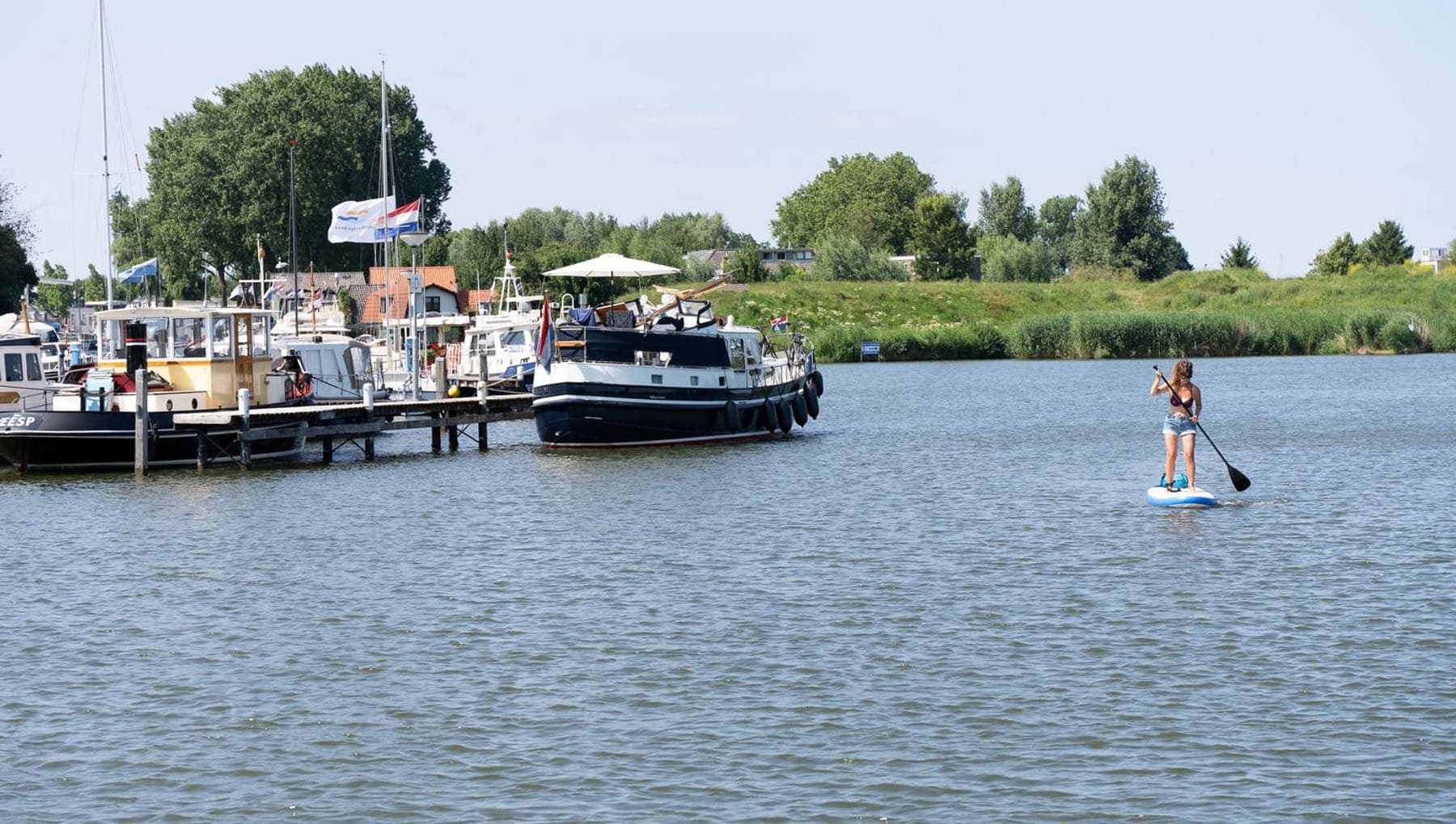 A woman on a stand-up paddleboard at the port @ Weesp